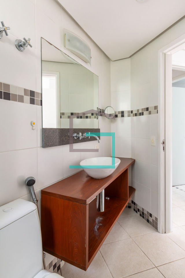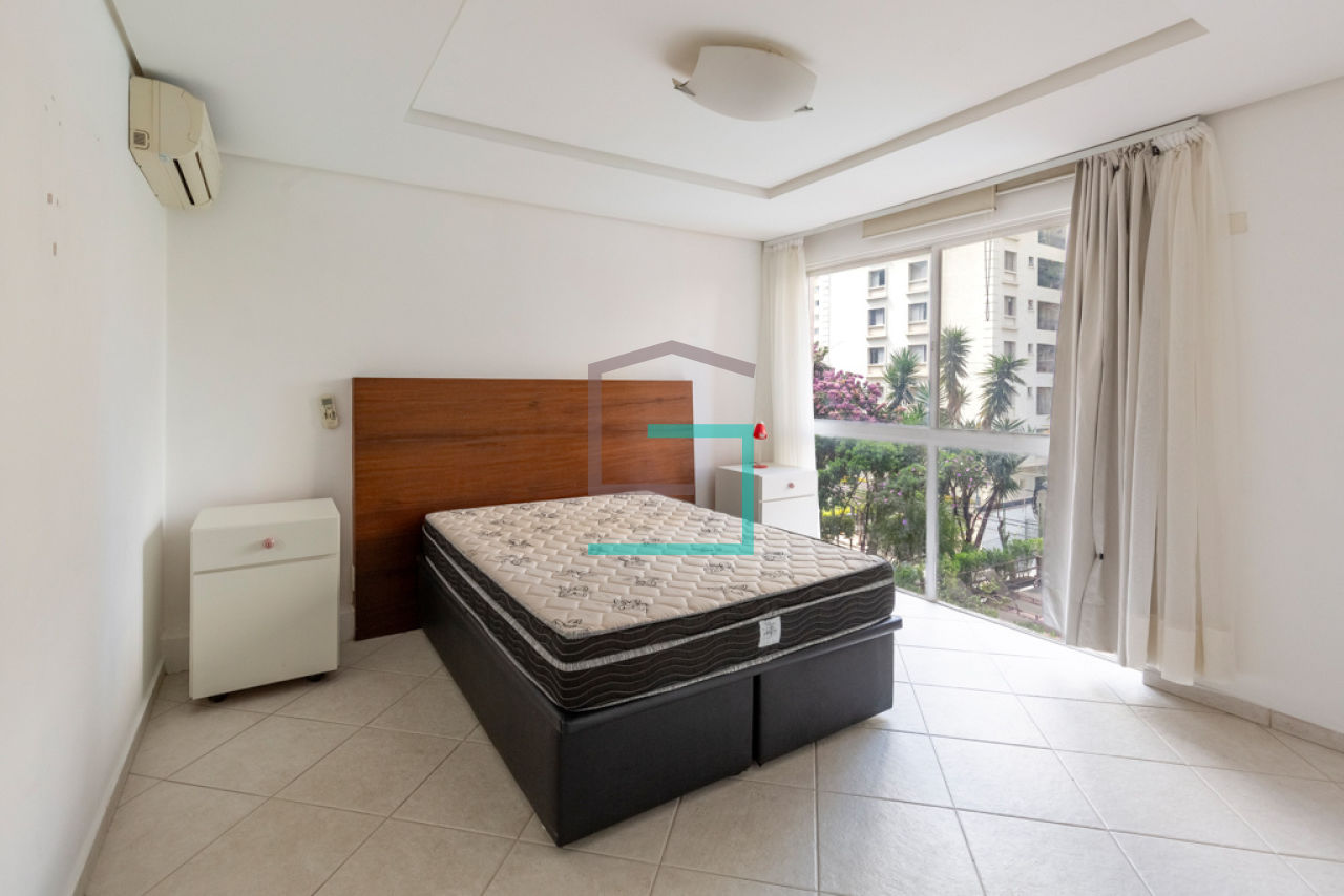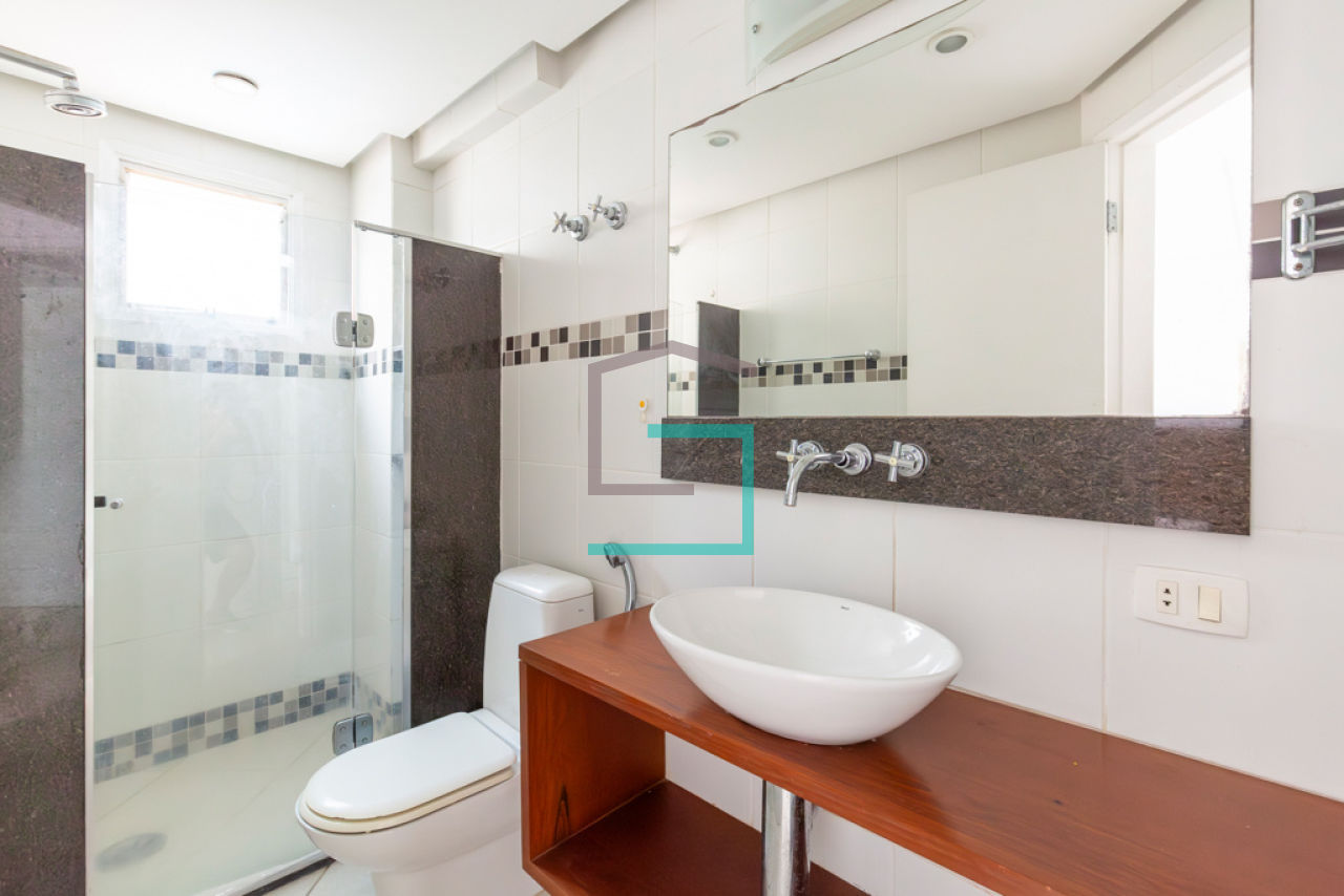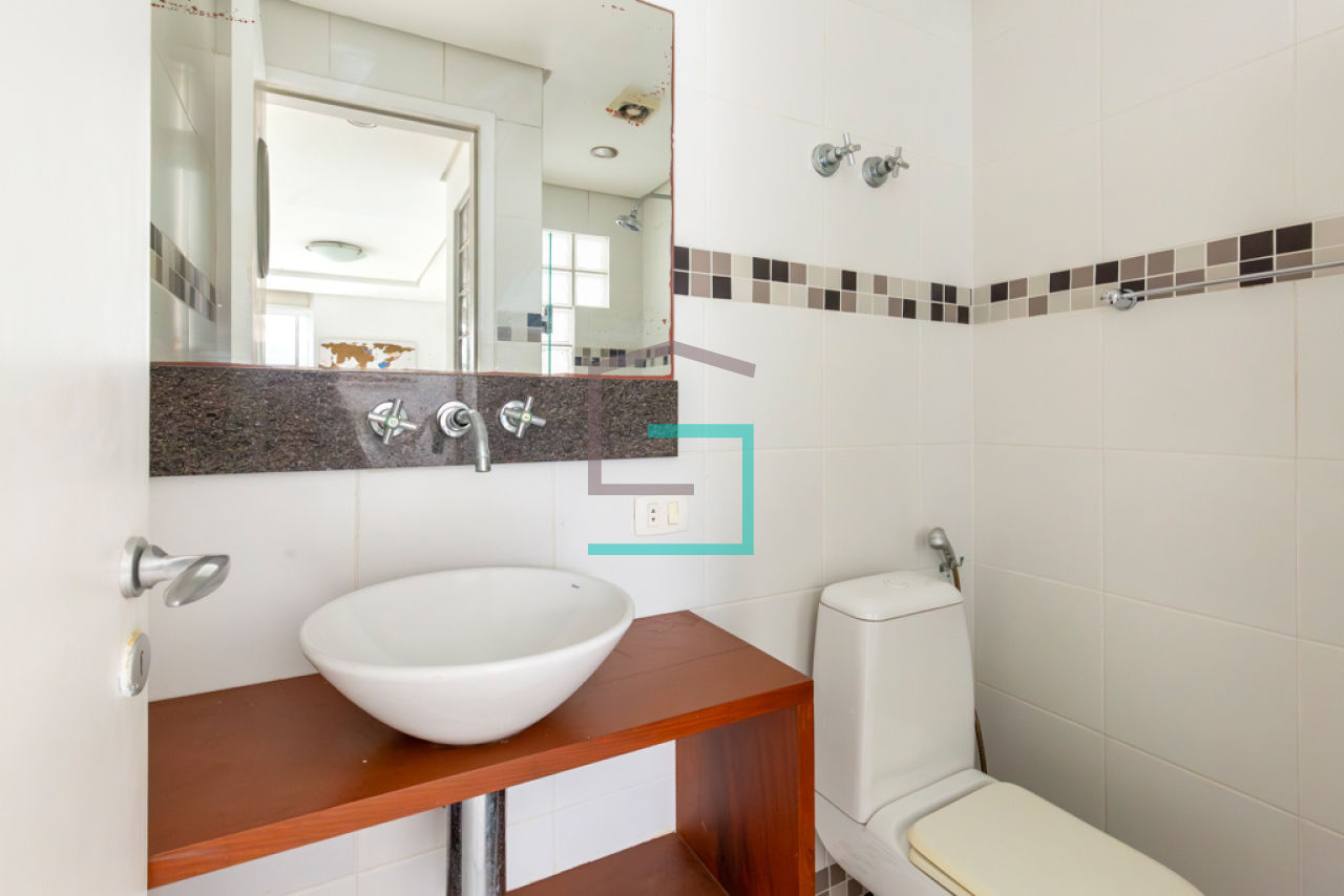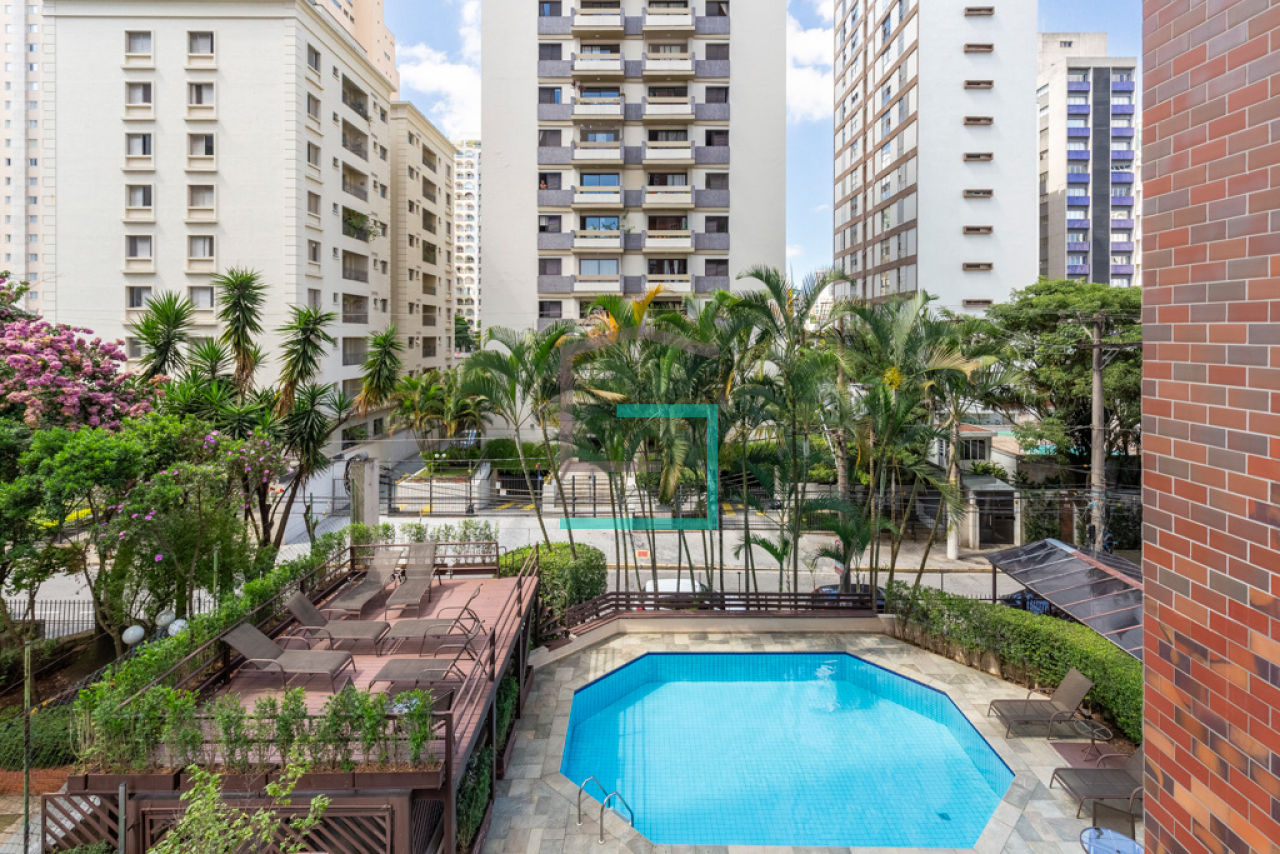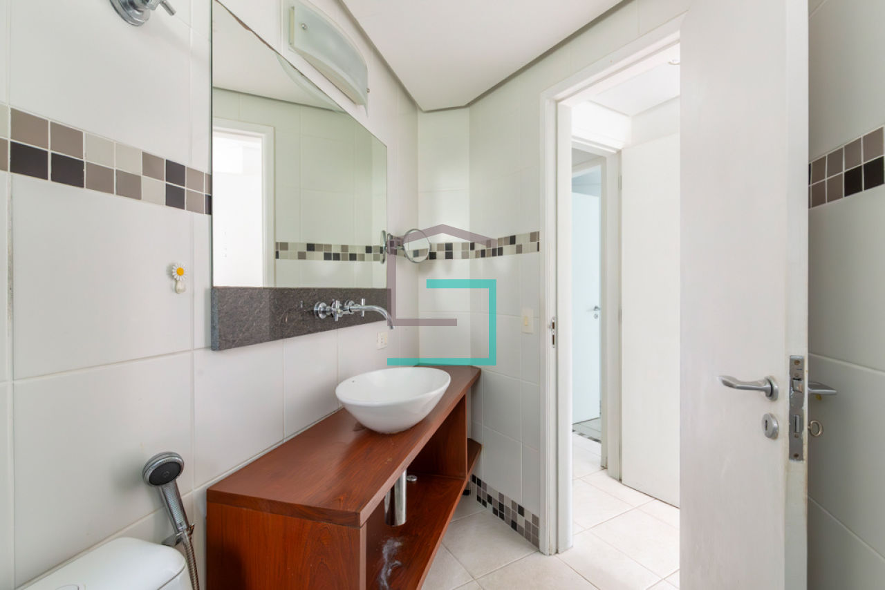 Uma vaga de garagem com manobrista 24h. O condomínio tem piscina, solário, academia, sauna, spa, lavanderia, camareira (segunda-feira à sábado), vaga de visitantes, serviço de camareira e portaria 24h.