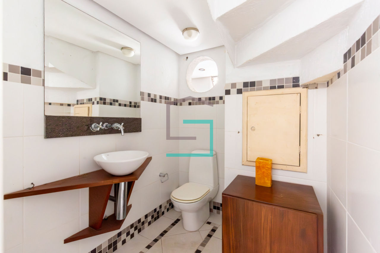 São 96m², num duplex charmoso, no primeiro piso, terraço ensolarado, sala, lavabo, cozinha americana e lavanderia.