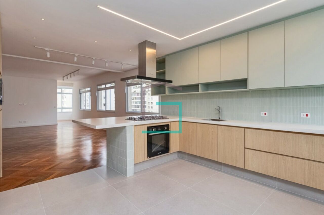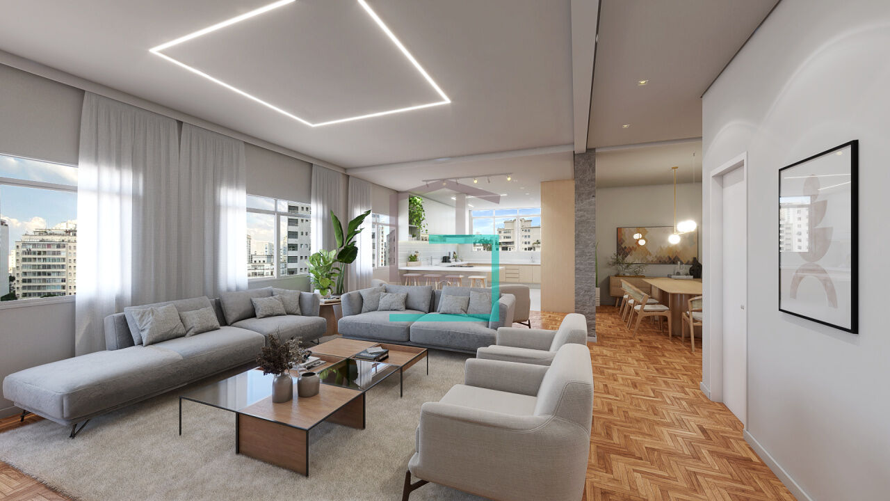 O Edifício está localizado na região central de Higienópolis, a vista da sala vai da rua Maranhão até a rua Piauí, onde é possível avistar um pedaço da Praça Buenos Aires, é extremamente agradável, com jardins na frente, e bem recuado em relação à calçada. O apartamento tem 3 dormitórios, sendo 1 suíte, banheiro social, lavabo, sala para 3 ambientes, cozinha Integrada, despensa, área de serviço, é possível converter a despensa em banheiro de serviço. Esse apto será entregue com marcenaria (cozinha, lavanderia e banheiros), cooktop, coifa, forno elétrico, micro-ondas, aquecedor à gás e ar condicionado (sala e quartos).