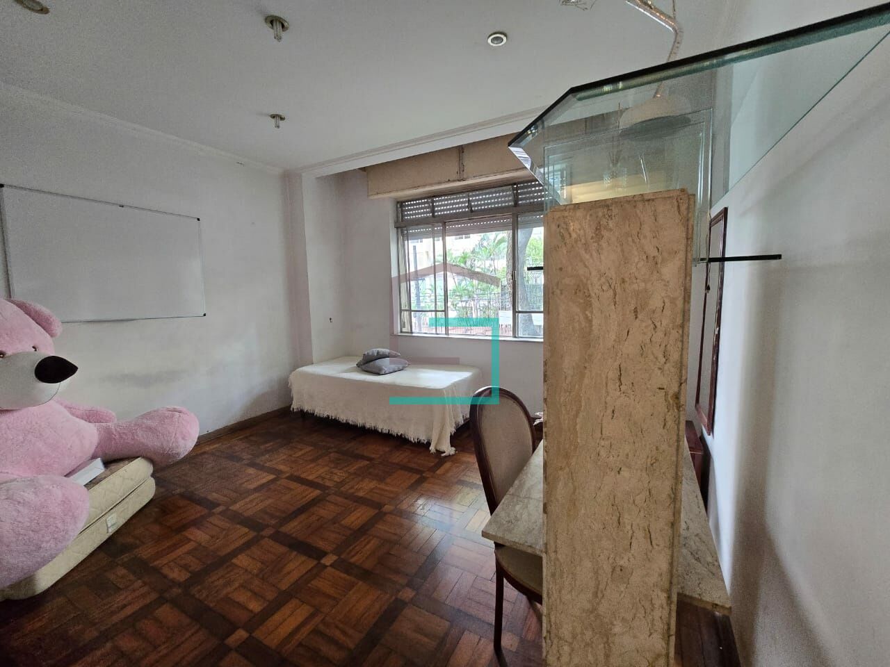 Apartamento amplo, com uma planta que permite alterações em seu interior, janelas grandes, pé direito com 3 metros, piso em madeira, armários embutidos, tem três dormitórios espaçosos, uma suíte, banheiro social, lavabo, living para três ambientes, cozinha e área de serviço bem espaçosos e arejados, dependência de empregado, duas vagas de garagem. Está localizado a duas quadras da Universidade e Metro Mackenzie, próximo ao Shopping Higienópolis.
