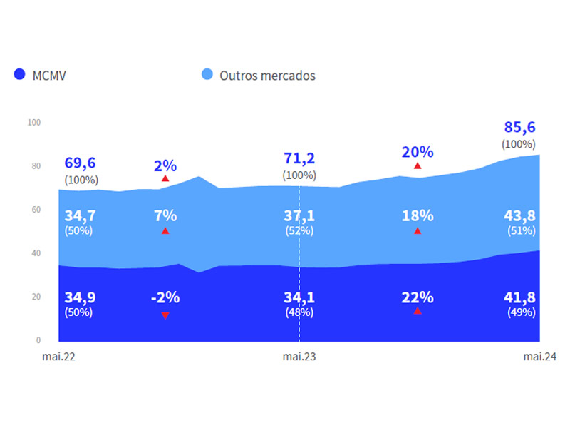 O indicador VSO (Vendas Sobre Oferta), que apura a porcentagem de vendas em relação ao total de unidades ofertadas, foi de 12,3% em maio.